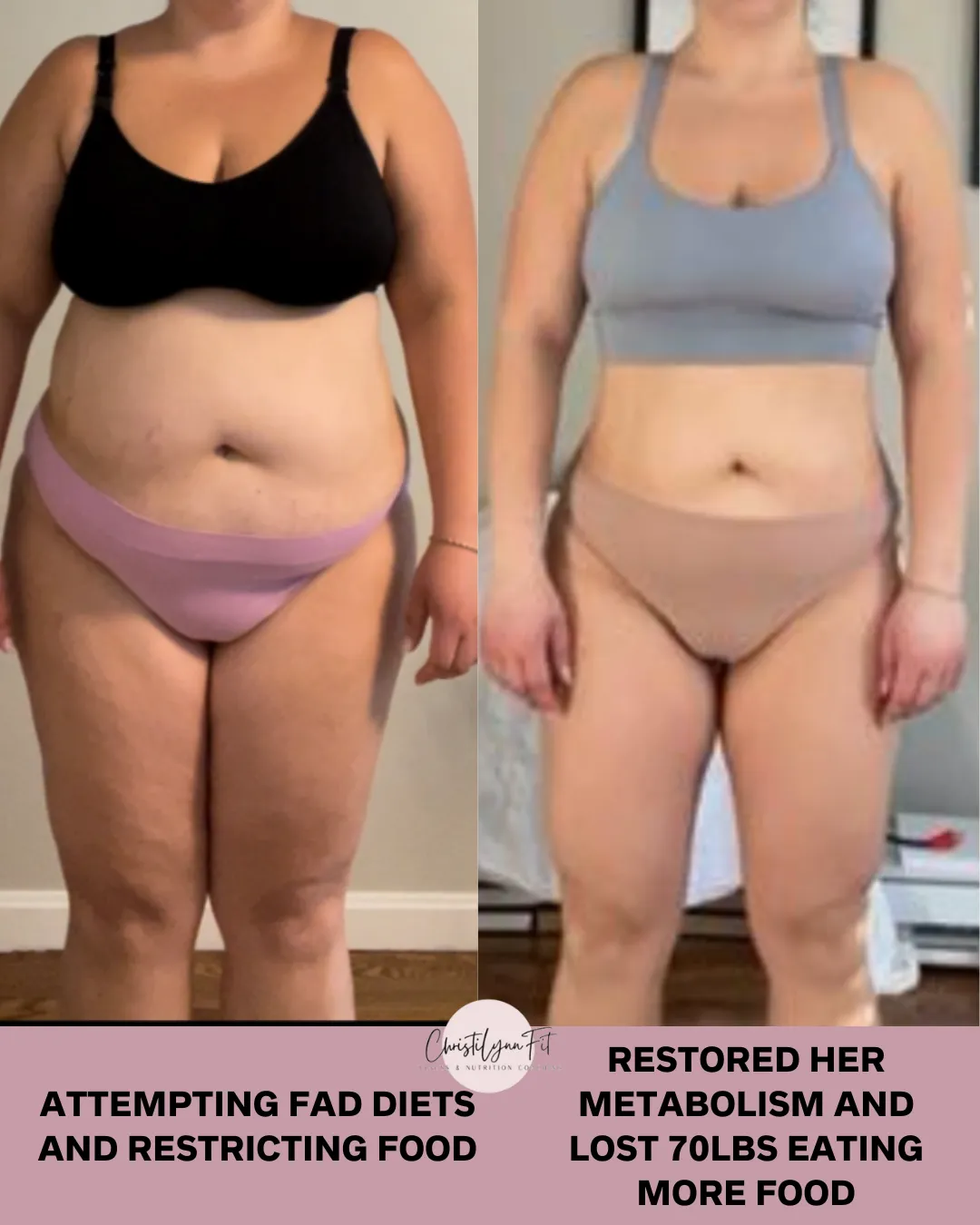 We focus on restoring your metabolism first so your body feels safe to let go of fat. Many of our moms come from a history of chronic dieting or low-calorie eating.